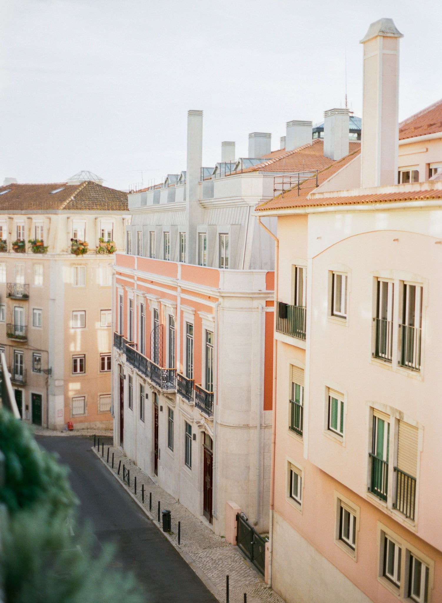 A fine art print of a photograph taken on medium format film by Chrissy O'Neill in 2020 -- Creamy sorbet tones make up this painterly view in Lisbon, Portugal.